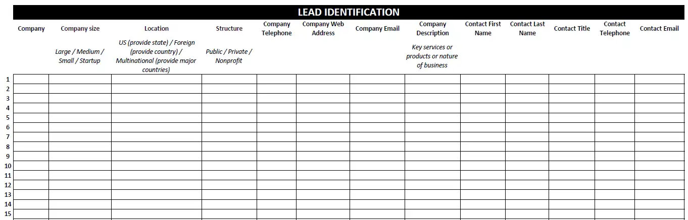 After the marketing materials are prepared, companies will be identified based on their potential interest in the technology. Individuals within the companies will be identified based on their role and ability to champion the adoption of new technology from within their company.