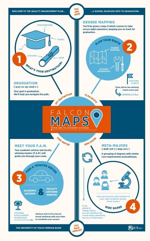 It’s important for UT Permian Basin students to know about Falcon Maps (QEP) so they can successfully navigate the college journey. It also plays an important role in the University’s accreditation process.